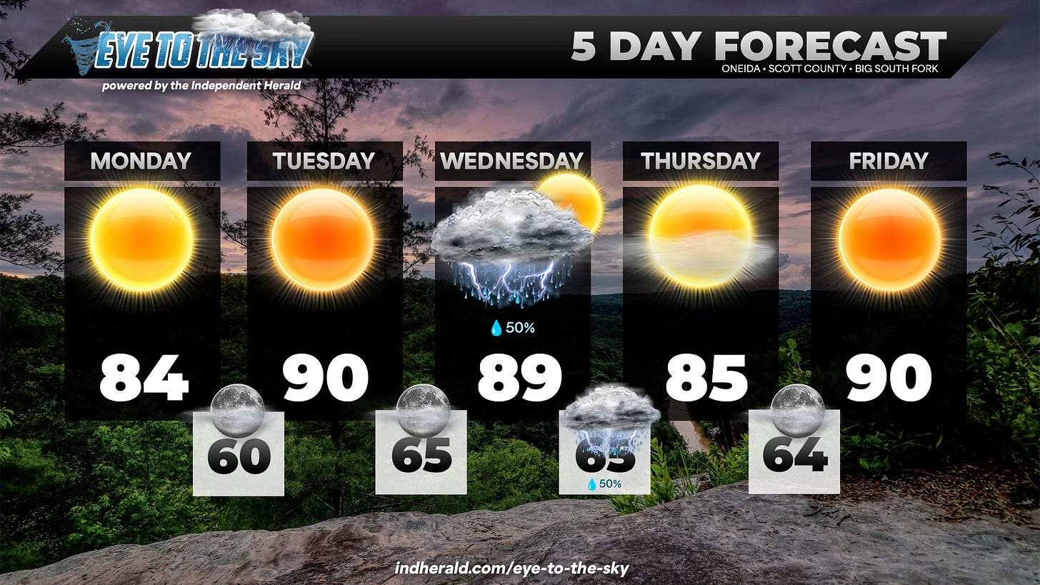 River Conditions: The last measurable rainfall was on June 10. Streamflows have plunged to below-normal levels for this time of year. The Big South Fork River is only flowing at about 130 cfs at Leatherwood Ford. Clear Fork is flowing at around 25 cfs at Burnt Mill Ford. These conditions could potentially change slightly late this week, depending on whether the region sees mid-week thunderstorms.