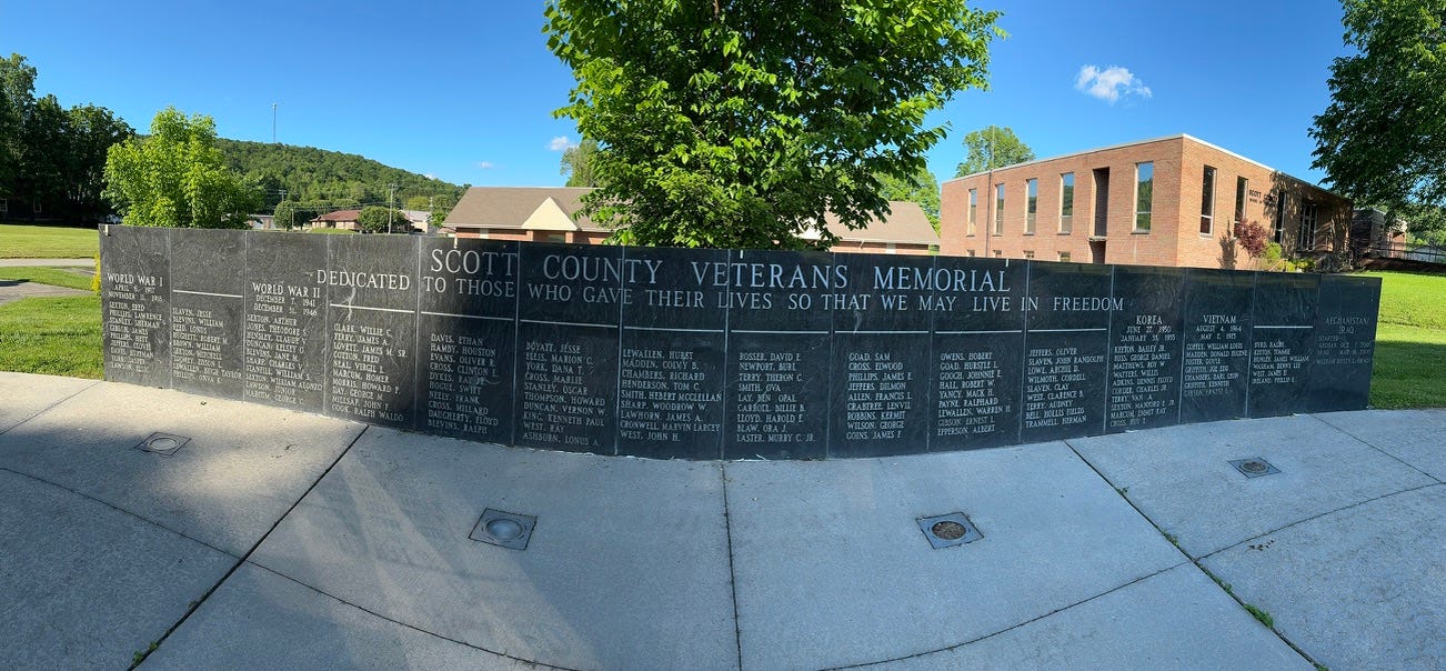 Pictured: The Scott County Veterans Memorial on the Courthouse Mall in Huntsville.
