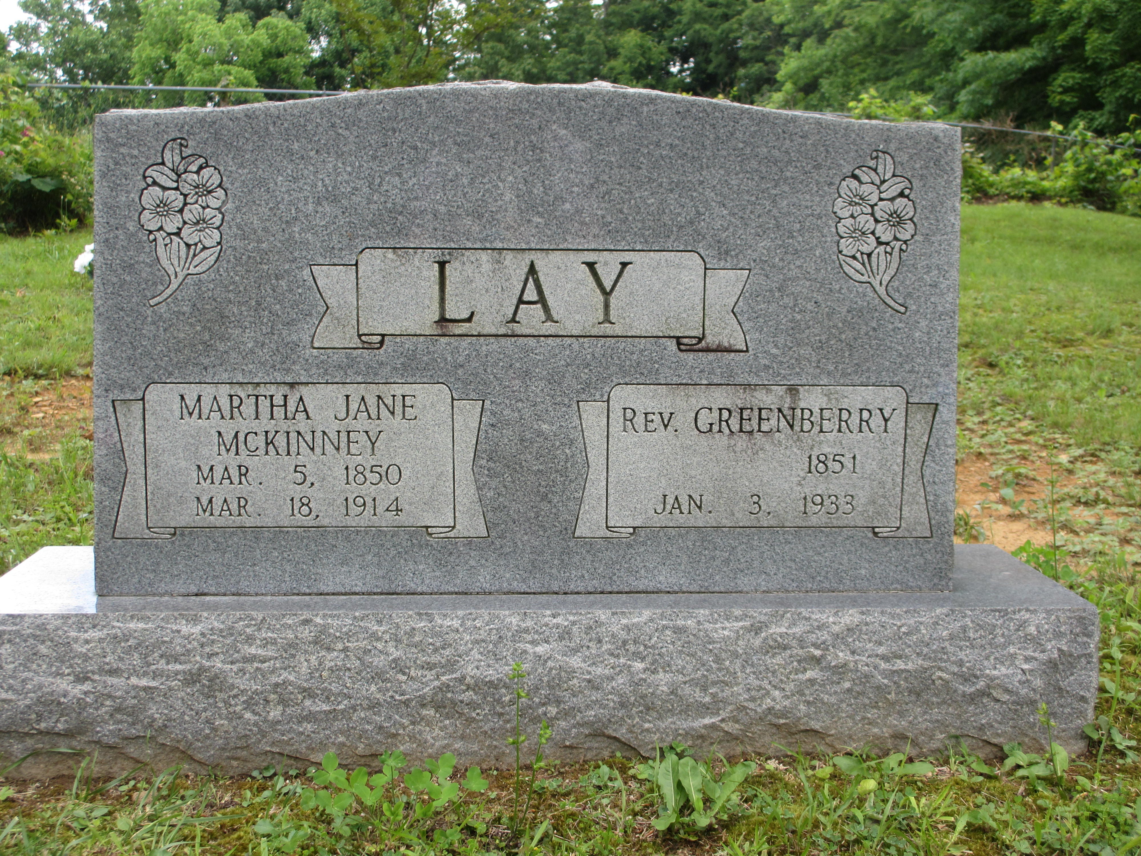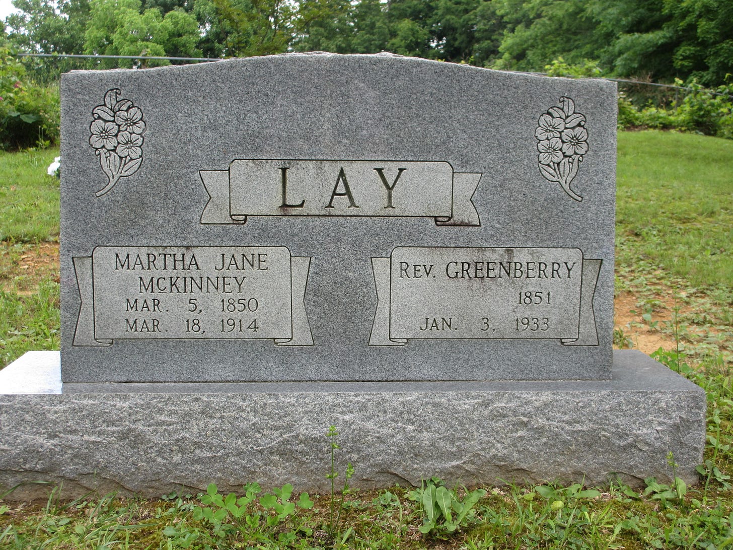 Greenberry and Martha Jane had eight children: Nancy Lay Cooper (1870-1933), Sarah Jane Silcox (1872-1938), William Alford Lay (1874-1955), James Lay (1875-1902), Margaret Irene Sharp (1881-1928), Rachel Louana Dupuy (1885-1959), John Crittendon Lay (1888-1975) and Michael C. Lay (1892-1979). It was William Alford who was the father of businessman Arlie Lay.