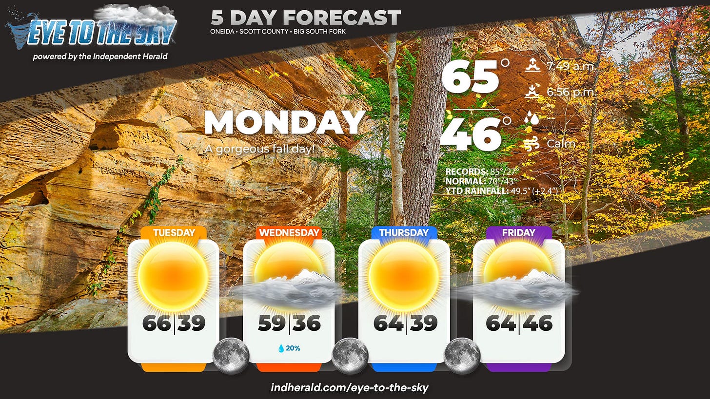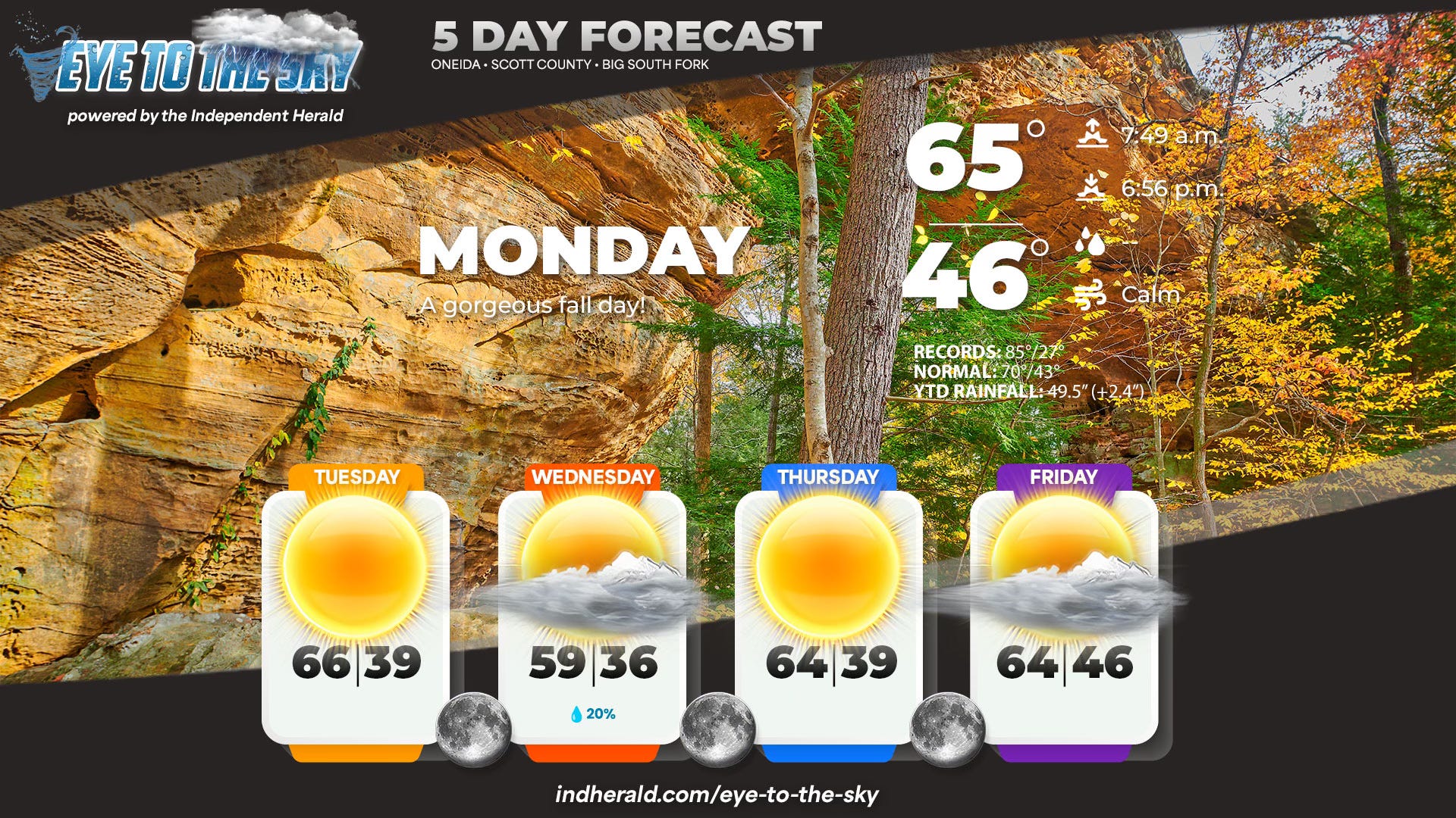 ☀️ Weather: Temperatures will be a bit on the cool side of average most of this week. We’ll deal with a mostly dry frontal boundary that’ll bring windy conditions and cooler temperatures Tuesday into Wednesday, then there will be a better chance of rain this weekend. Check out our daily Eye to the Sky updates on our Facebook page — published each morning at 7 a.m. on the dot — or always available at indherald.com.