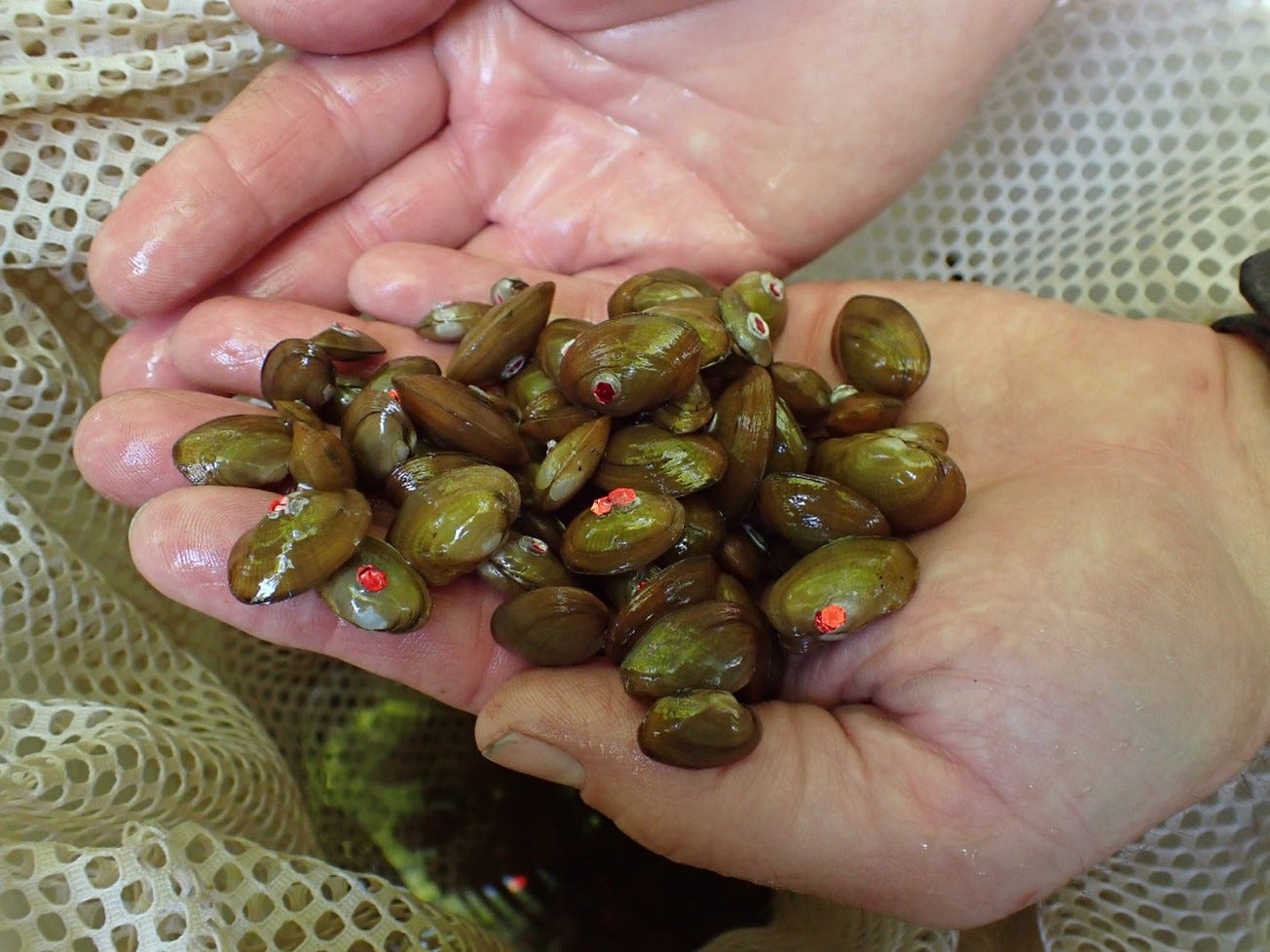 Recently, staff from both agencies have been working together to recover the Big South Fork populations of this species by supplementing their numbers. Male and female tan riffleshell mussels were collected from Big South Fork and used to produce thousands of baby mussels. These small mussels have been added to limited locations where the species is known to exist at Big South Fork over the last few years.