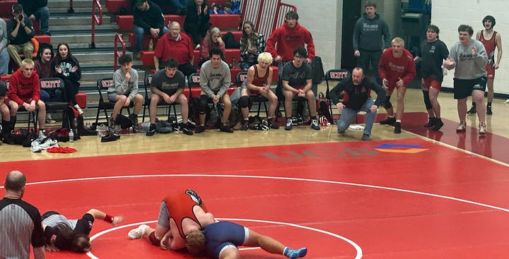 In Tuesday’s semifinal match, the Highlanders defeated Gibbs by a single point, coming from behind with a major decision by senior Mason Lewallen giving the Highlanders a 35-28 lead in the next-to-last individual match and guaranteeing the win. The final was 35-34 after Gibbs secured a pin in the final individual match.