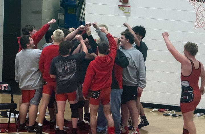 HUNTSVILLE | Scott High won its first district championship in wrestling Tuesday night, defeating Anderson County by a score of 43-36 in the district duals championship match at Highlander Gymnasium.