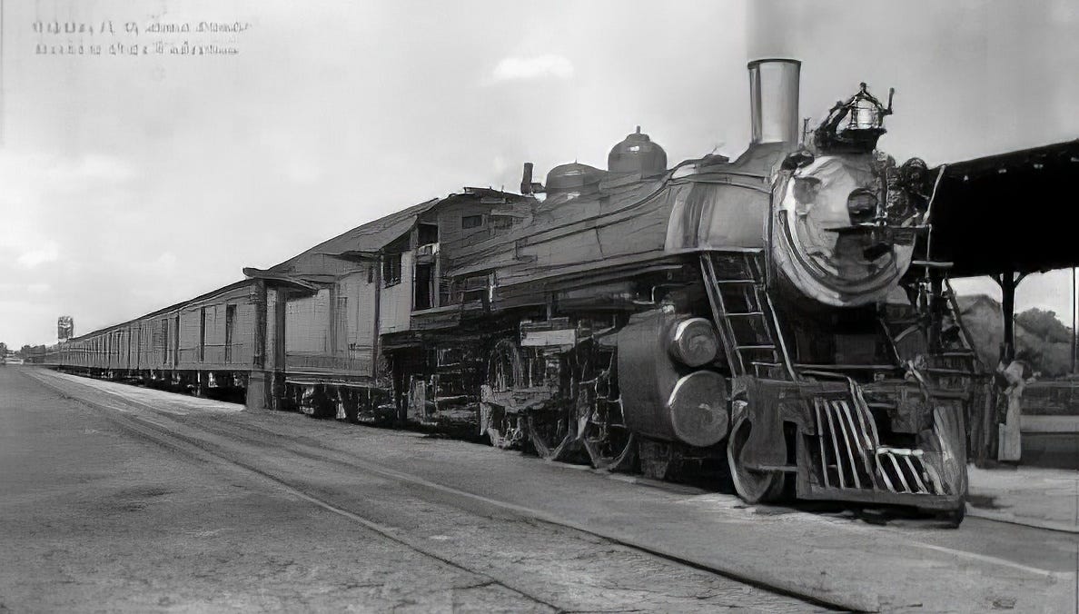 Strung out behind the locomotive was a train of 11 cars — mail-baggage cars and an assortment of Pullman coaches and sleepers.