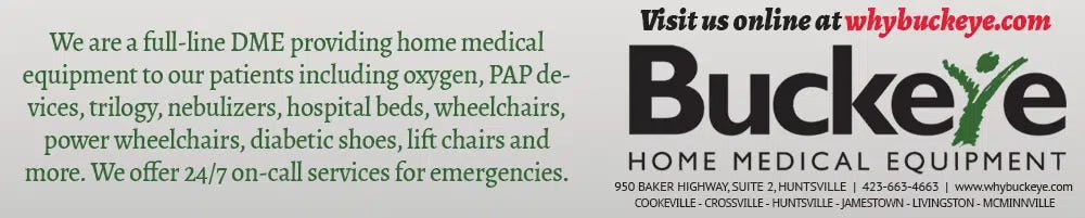 Today’s newsletter is sponsored by Buckeye Home Medical Equipment. Serving Scott County and several other communities in the Upper Cumberland region, Buckeye is a full-line DME providing home health equipment to its patients.