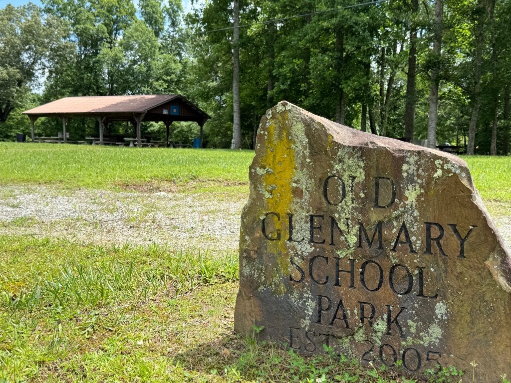 At the top of the hill, the former Glenmary School site is today the Glenmary School Park, a well-maintained picnic area owned by Roger Russell and Dale Webb.