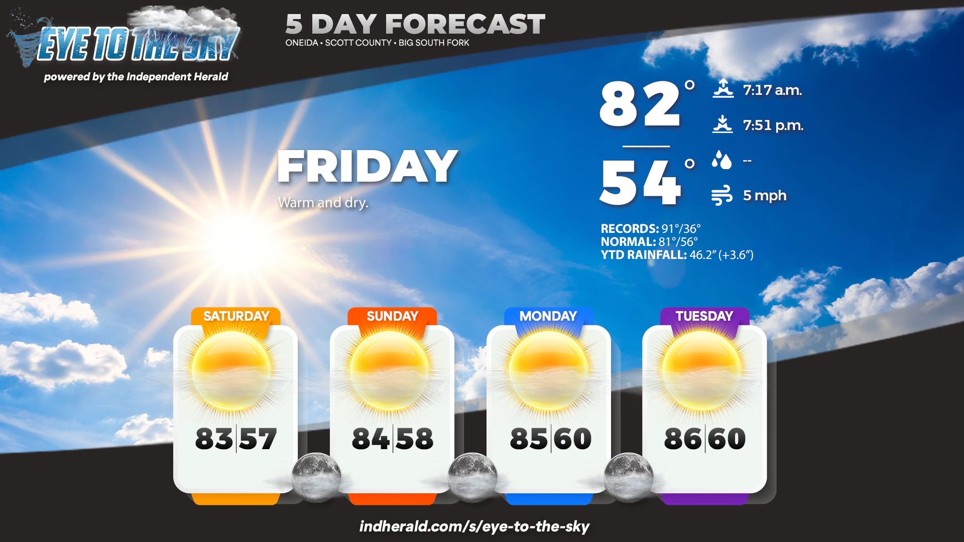 ☀️ Weather: Bone-dry weather and warming temperatures will remain the theme through the weekend and much of next week. Check out our daily Eye to the Sky updates on our Facebook page — published each morning at 7 a.m. on the dot.