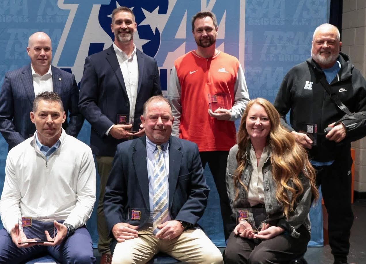 Jeremy Hamby (back row, second from right) was named the Tennessee Secondary School Athletic Association’s Principal of the Year from District 2 for 2025, and was honored at a ceremony on Nov. 13. Other honorees included Dr. Jon Rysewyk as School System Administrator of the Year, Scott Cupp as Athletic Director of the Year, Abby Williams as Female Coach of the Year, Rick Howard as Male Coach of the Year, Rob McConkey III as Official of the Year, and Rick Russo as Contributor of the Year.